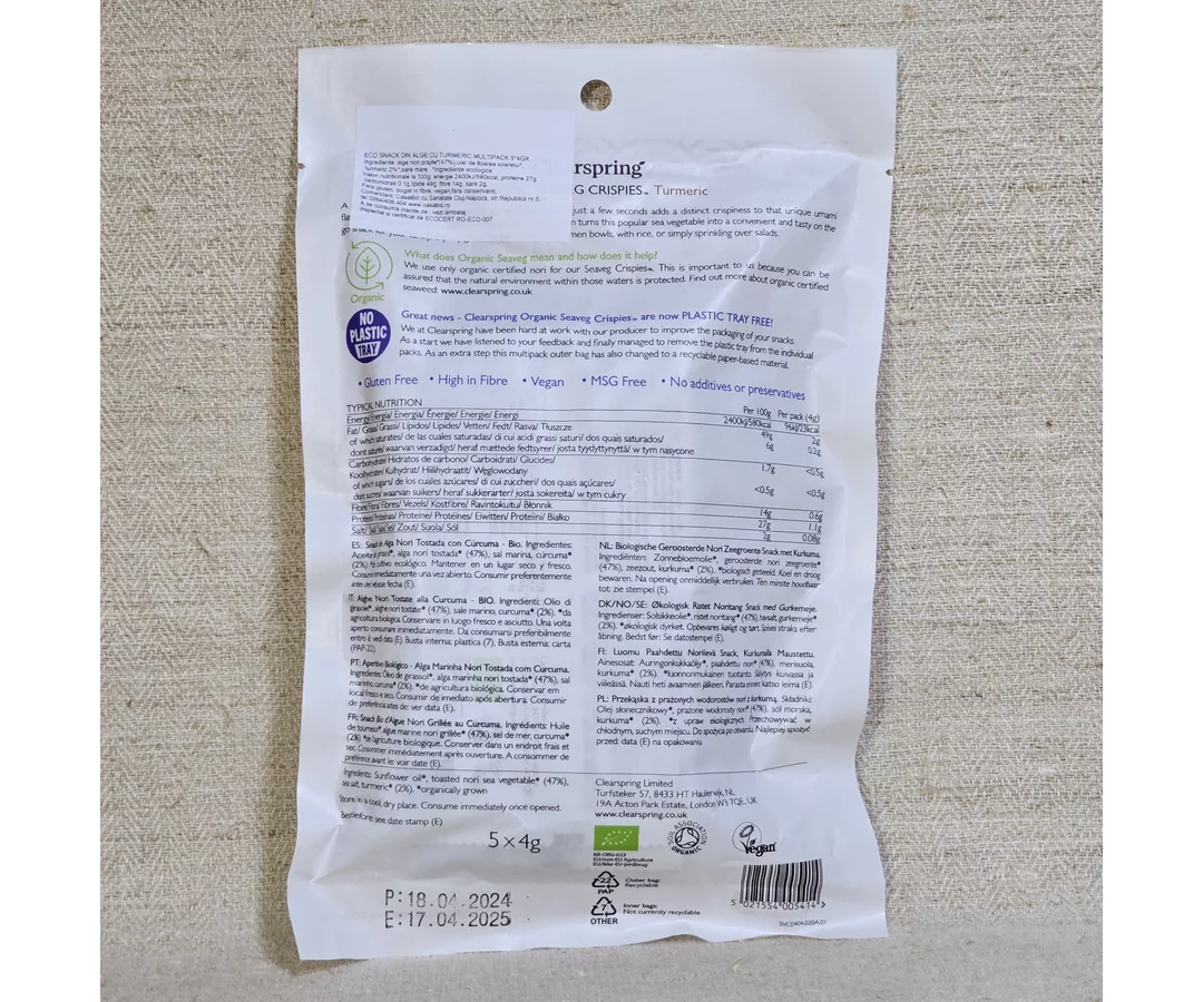 Multipack seaweed snack nori with turmeric ECO 5x4g