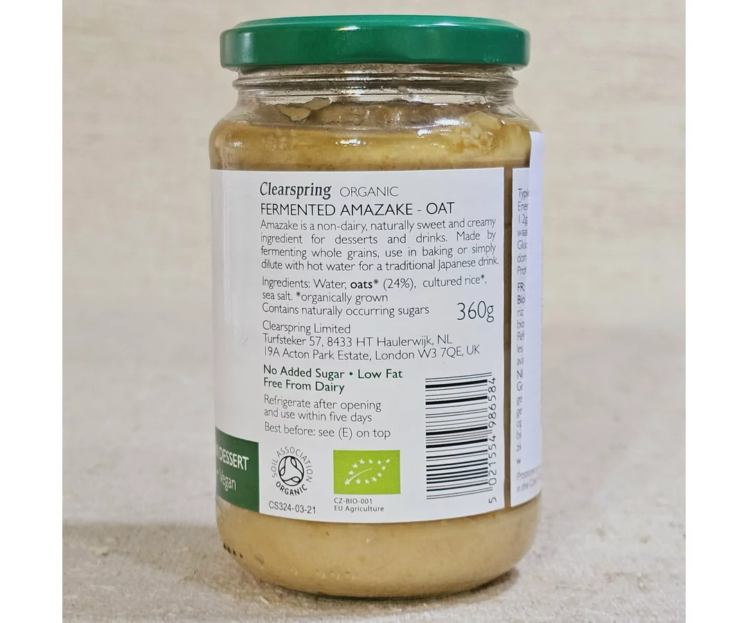 Amazake Clearspring dessert with oats, obtained from only 3 organic ingredients: water, whole grains and a pinch of salt. The result is a sweet, creamy and dense dessert, traditional Japanese, without dairy.