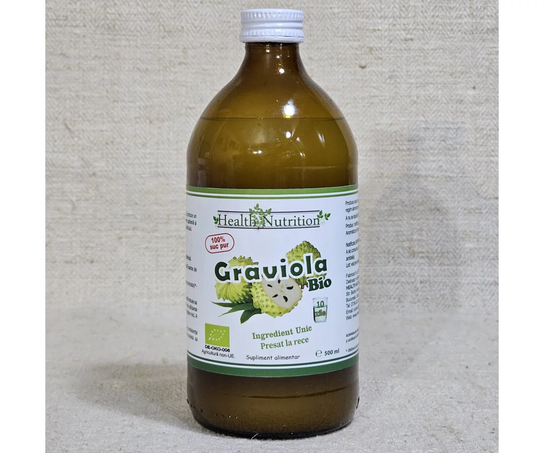 Graviola 100% pure juice contains a balanced amount of dietary fiber that helps prevent the absorption of cholesterol in the intestines. It also has a balanced sodium-potassium ratio. A good level of potassium in the body helps heart rate and blood pressure.