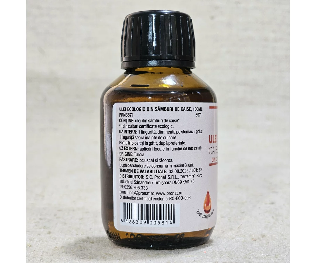 Cold pressed oil made from apricot kernels ECO 100ml