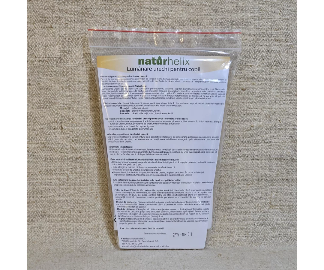 By burning the candle positioned in the external auditory canal, a light vacuum and a feeling of warmth are created. The heat improves the circulation, the slight vacuum positively influences the disorders appeared in the auricular cavity due to some external traumas or inflammations. It also helps soften the earwax. The candle also stimulates the acupuncture points in the eardrum area that cannot be reached otherwise.